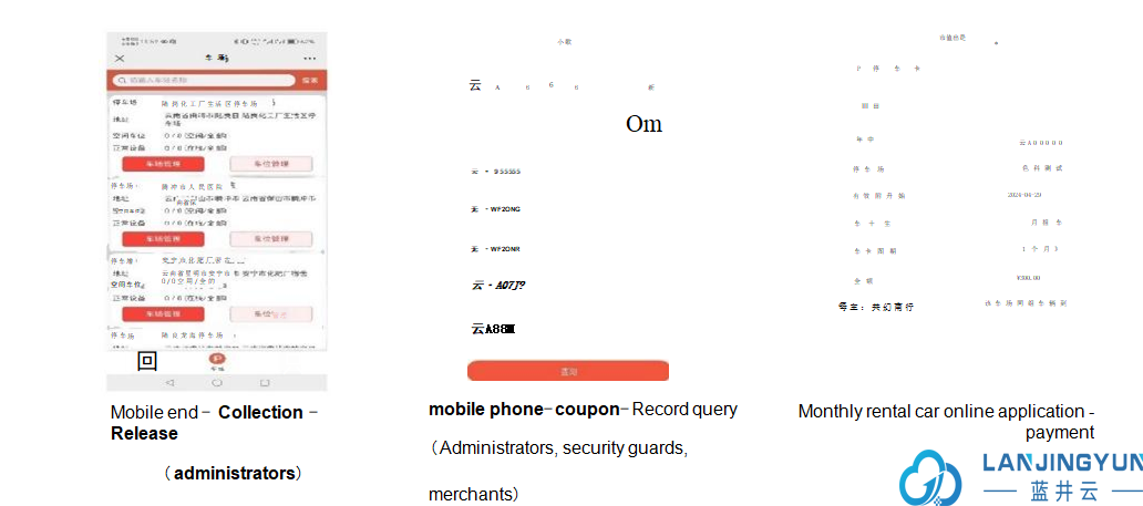 Parking lot management, vehicle type, parking space management, unmanned entry and exit records, parking billing, monthly rent paid online